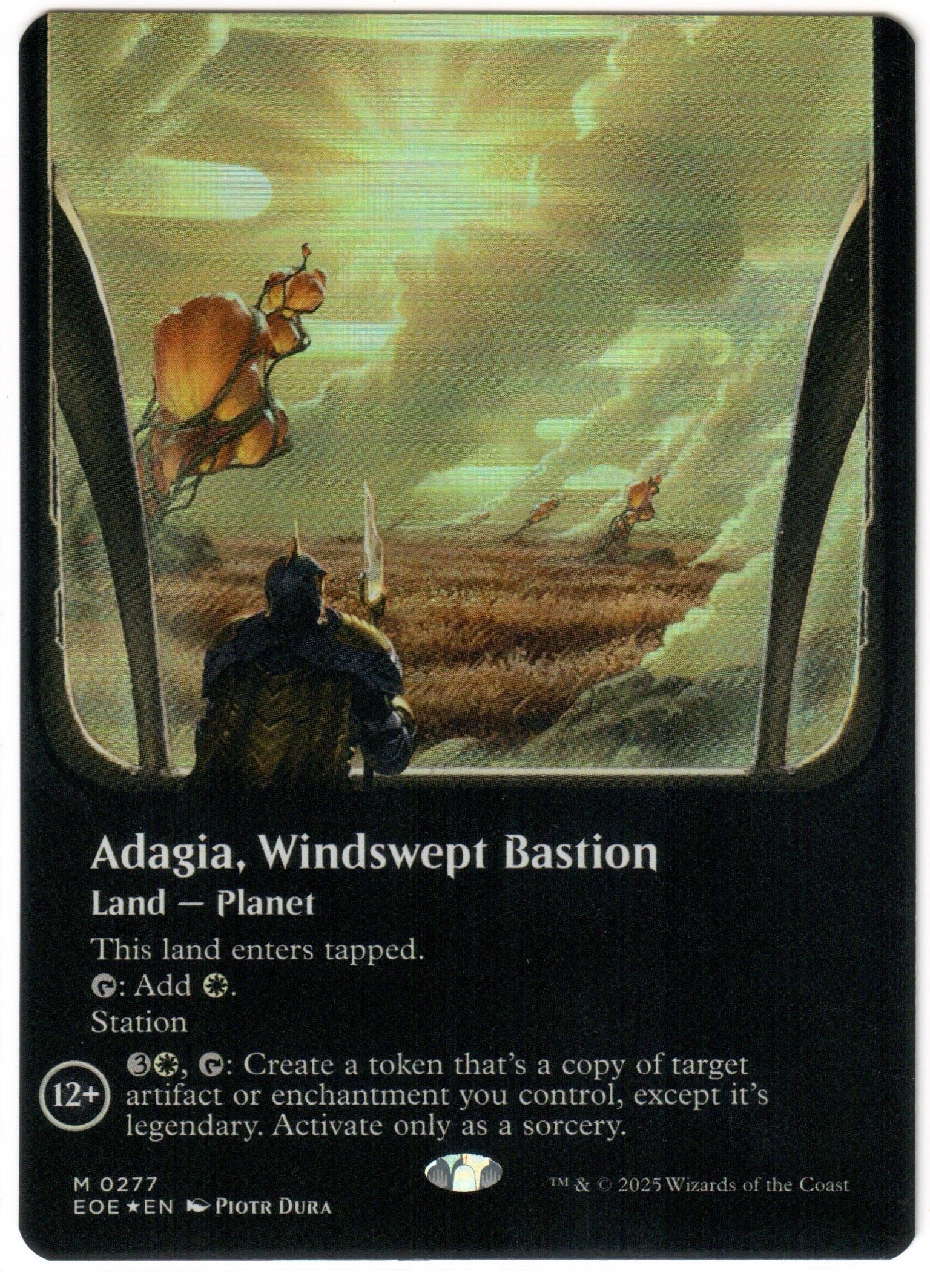 For sale is a straight-from-pack-to-case Adagia, Windswept Bastion Borderless Foil (277) card from the Edge of Eternities set of Magic the Gathering. Mint.