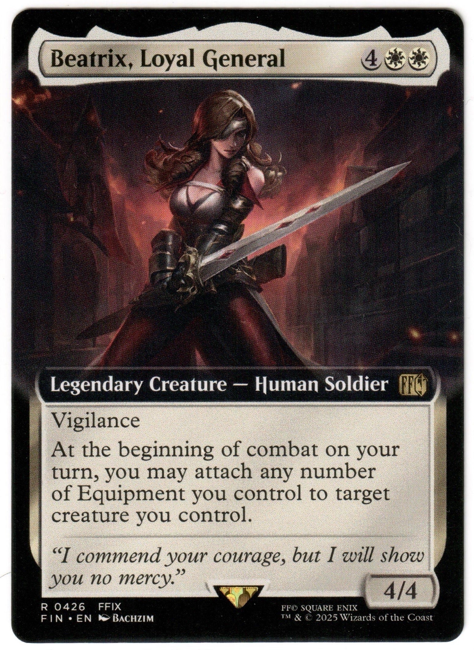 For sale is a mint/near mint condition Beatrix, Loyal Guardian Extended Art, NON-FOIL, card from the Final Fantasy set of Magic the Gathering.