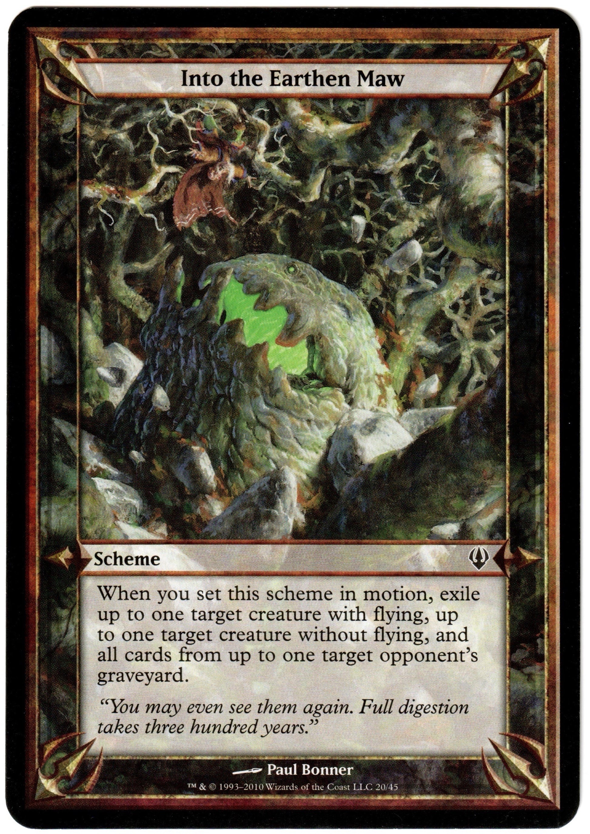 For sale is an Into the Earthen Maw oversized card (20/45) from the Archenemy set of Magic the Gathering, in lightly played condition, nearly near mint.