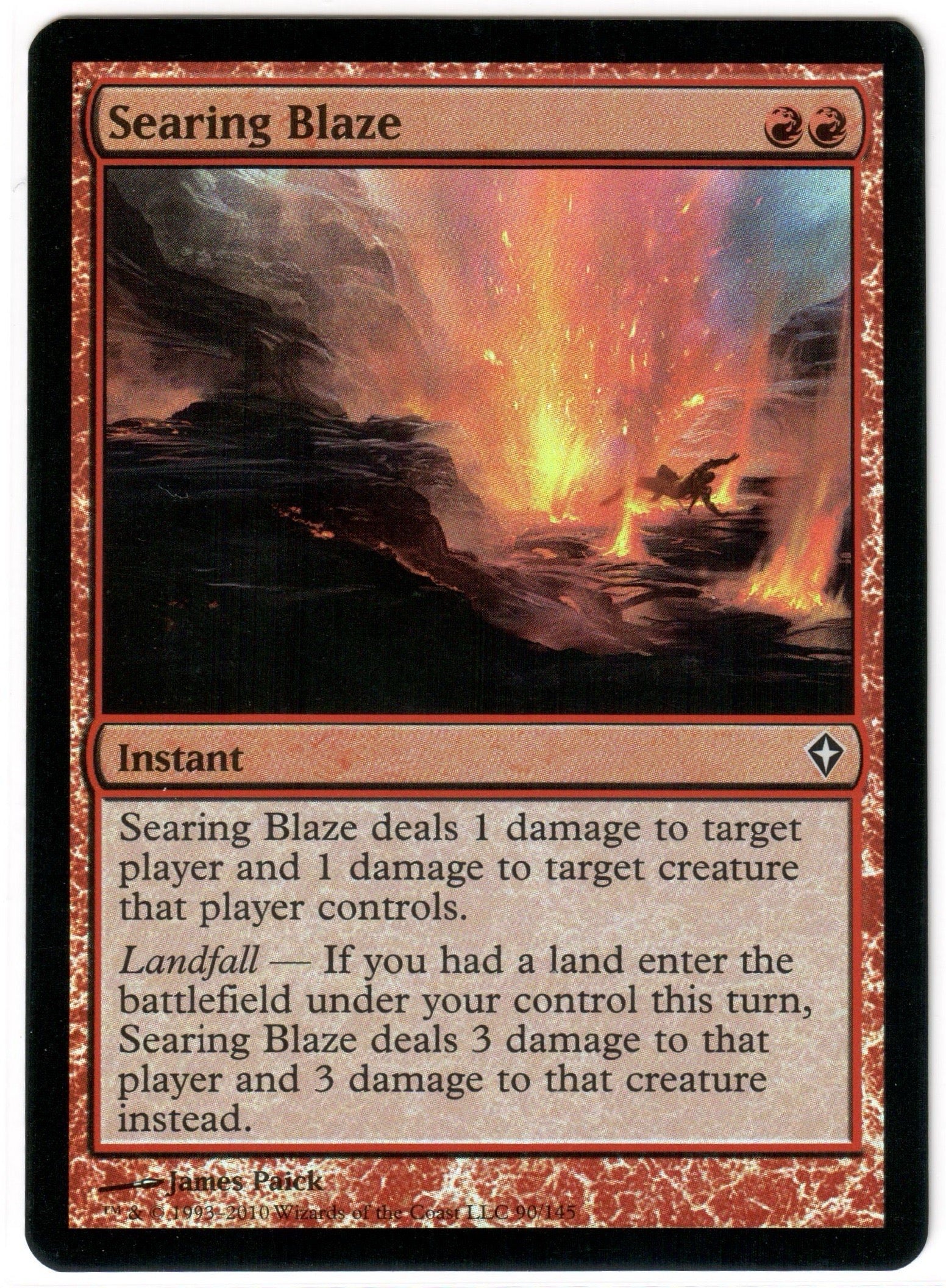 For sale is a Searing Blaze FOIL card (90) from the Worldwake set of Magic the Gathering, in lightly played condition.